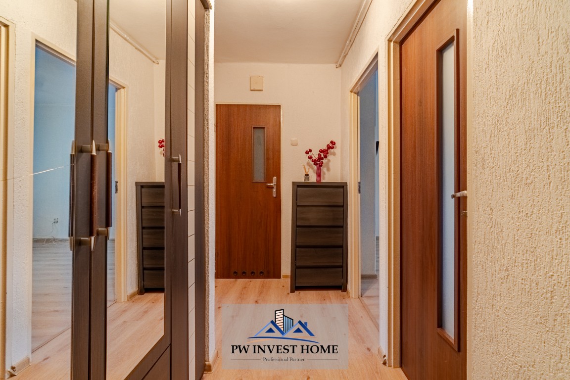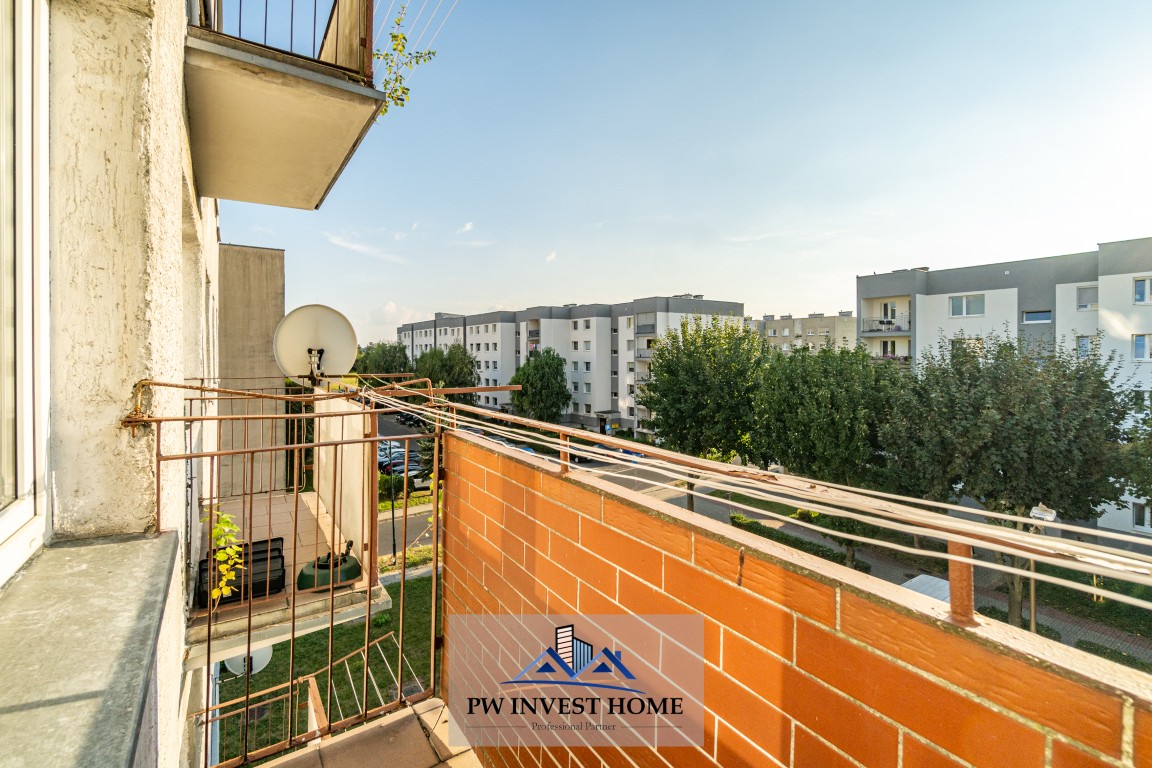 Mieszkanie składa się z dwóch ustawnych pokoi, kuchni, łazienki z WC oraz przestronnego przedpokoju. Balkon zapewnia dodatkową przestrzeń do wypoczynku. Do mieszkania przynależy piwnica. Ogrzewanie miejskie.